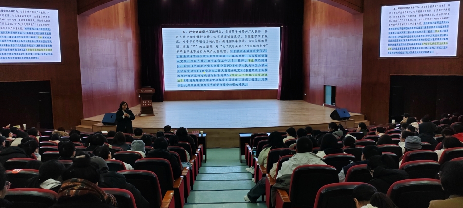为进一步加强学生科研诚信意识,提升毕业论文写作质量,我校2025理论电费免费软件下载于12月30日在图书馆报告厅举办本科毕业论文科研诚信教育讲座。本次讲座由副校长许玲玲主持,各院部毕业生及指导老师共计500余人参会。