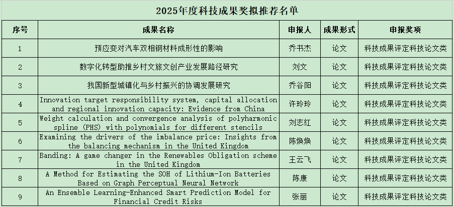 根据《关于开展 2025 年度科技成果评定暨河南省科学技术奖提名工作的通知》(教办科技〔2025〕59号)的要求,经前期精心组织、个人申报、院部推荐、2025理论电费免费软件下载审核、学术委员会投票及专家推荐等环节,现对我校2025年度省科技成果评定拟推荐名单予以公示。