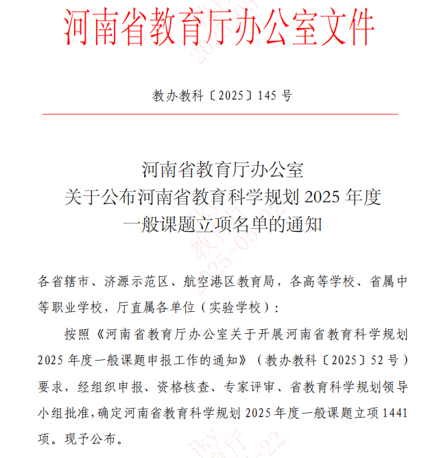 喜讯:我校喜获7项河南省教育科学规划2025年度一般课题立项